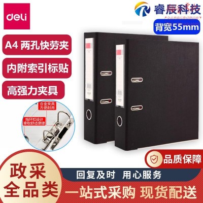 得力 5480 文件夹二孔A4快劳夹活页夹2寸55mm插页档案夹纸板D型加厚打孔(黑)(只) SKU:yzwhyp825389