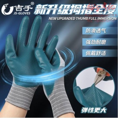 耐磨星A788物理压纹劳保手套浸胶耐磨加厚防水防滑建筑工地干活胶皮防护手套批发 4双-吉手耐磨星A788SKU:yzwhyp827133