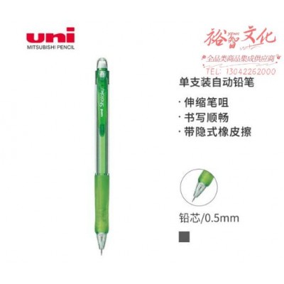 首页 > 办公用品 > 文具 > 三菱(Uni)M5-100活动铅笔 0.5mm学生自动铅笔橡胶手握透明彩色杆带橡皮可擦笔 绿色 1支装 SKU:yzwhyp830046