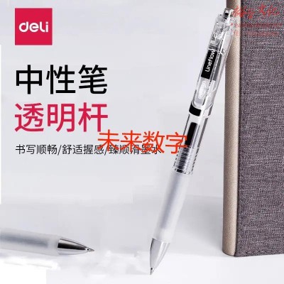 得力S101按动中性笔0.5mm子弹头臻顺滑黑(黑)(12支) SKU:yzwhyp831613