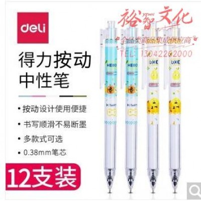 得力 A625 学生中性笔0.38mm按动全针管(黑)(12支) SKU:yzwhyp831996