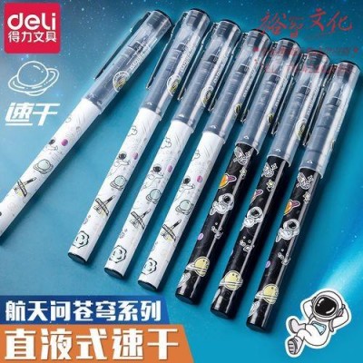 得力 S873 中国航天直液式走珠笔0.5mm全针管(黑)(12支/盒) SKU:yzwhyp832000