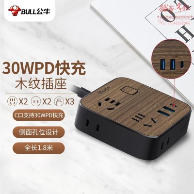 首页 > 建筑建材 > 开关插座 > 公牛(BULL)30W PD苹果快充插座/插线板/插排/接线板/拖线板 3USB 4孔 黑色木纹全长1.8米 GN-R322Q30SKU:yzwhyp833305