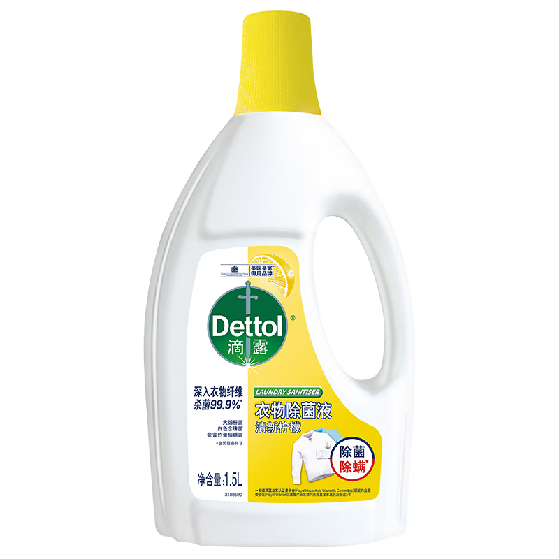 滴露(Dettol)衣物除菌液清新柠檬1.5L 高效杀菌内衣除螨 配合洗衣液消毒液使用 SKU:yzwhyp833755