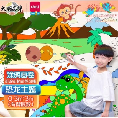 得力(deli)YC304-3涂鸦画卷恐龙主题 带背胶图画本 0.3*3米 SKU:yzwhyp833766