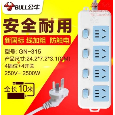 首页 > 建筑建材 > 开关插座 > 公牛插座独立开关插排面板多孔多功能一位一控多开关分控排插 【四插位4开关】全长10米 SKU:yzwhyp834932