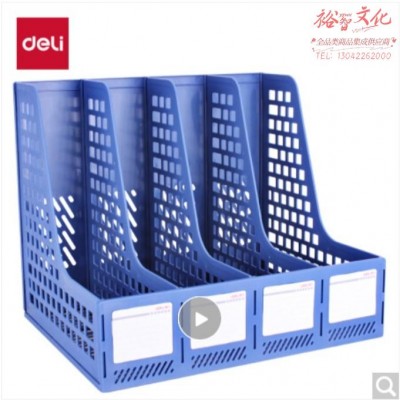 得力(deli)4联镂空桌面文件框书立 办公室桌面四栏带标签资料文件架 书本资料收纳神器 蓝色27888SKU:yzwhyp835449