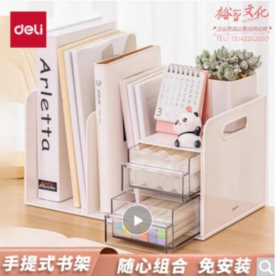 得力(deli)多功能书立架 创意收纳盒文件框办公室抽屉式置物架书架书挡 学生/办公用品 白色 PK110SKU:yzwhyp835494