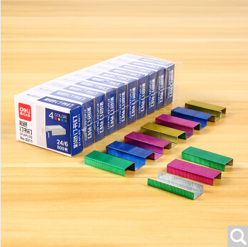 得力0211 彩色订书钉12#(混)(800枚/盒)(10盒装)SKU:yzwhyp836777