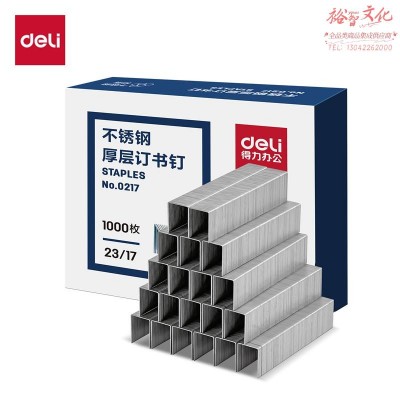 得力0217不锈钢厚层订书针23/17(银)(1000枚/盒)SKU:yzwhyp836803