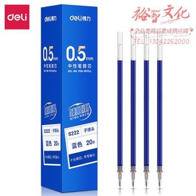 得力S222 臻顺滑中性笔替芯0.5mm子弹头(蓝)(20支/盒) SKU:yzwhyp837474
