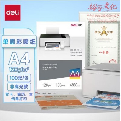 得力 3545喷墨打印纸A4-128g/㎡(白)(100张/包) 1包装SKU:yzwhyp838191