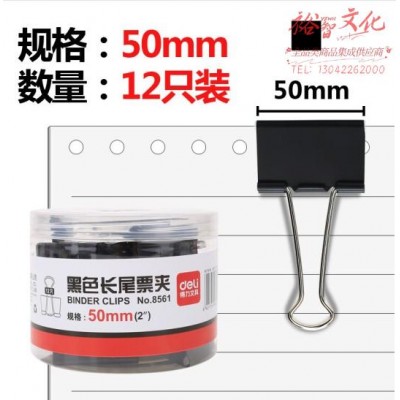 得力(deli)8561-1# 50mm黑色长尾夹票夹(12只/筒)SKU:yzwhyp838646