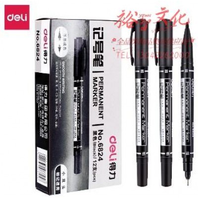 得力 6824小双头记号笔(黑色)(12支/盒)(5盒起售,偏远区域下单请电话咨询)SKU:yzwhyp838730