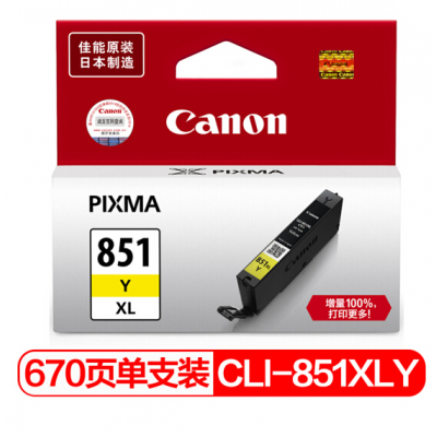 佳能(Canon) CLI-851XL Y 高容黄色墨盒 (适用MX928、MG6400、iP7280、iX6880)