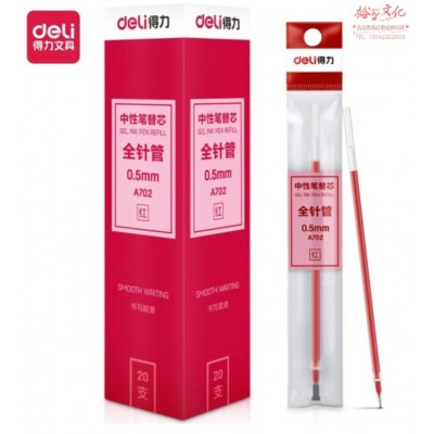 得力A702学生中性替芯0.5mm全针管(红)(20支/盒)SKU:yzwhyp840661