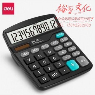 得力deli 0838计算器12位宽屏双电能源百分比计算机大按键办公财务专用(黑)SKU:yzwhyp841385