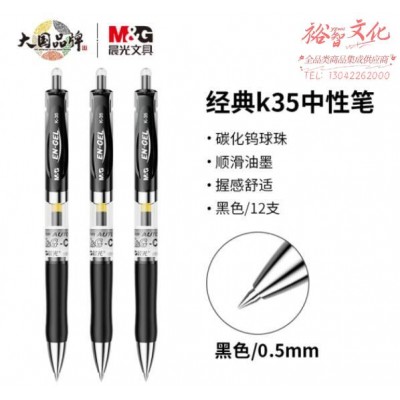 晨光(M&G)K35黑色0.5mm经典子弹头中性笔按动签字笔水笔 12支/盒 SKU:YZB101288