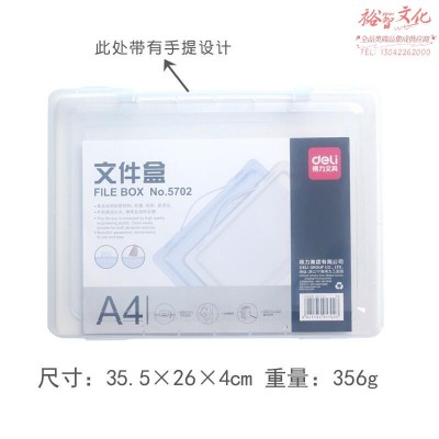 得力(deli)透明文件袋A4文件盒档案盒 塑料资料整理盒 学生试卷透明袋 5702 可手提透明色 单个装SKU:yzwhyp842272