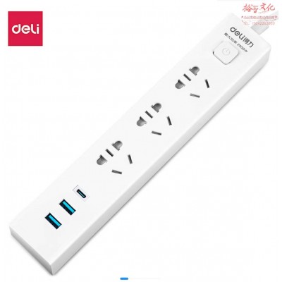 得力18290(1.8)插座3组 2U 1C 1.8米 彩盒装(白)(只)SKU:yzwhyp843052