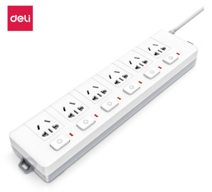 得力3980(05)延长线插座_6组_5米_PVC袋装(白)(只)SKU:yzwhyp843923