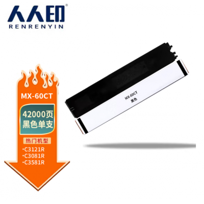 首页 > 办公用品 > 鼓粉盒 > 人人印MX-60CT粉仓黑色适用MX-C2621/3081/3121/3581/4081/6081打印机粉盒