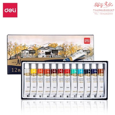 得力73886_12色12ml中国画颜料(混)(12色/盒)工笔画山水画专用中国画颜料套装SKU:yzwhyp845378
