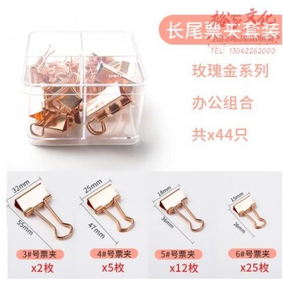 得力78205长尾票夹套装(玫瑰金)(44只/盒)SKU:yzwhyp845700