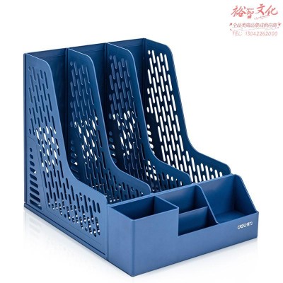得力78980三联文件框(蓝)独立笔筒 厚实材质 实用桌面收纳SKU:yzwhyp845768