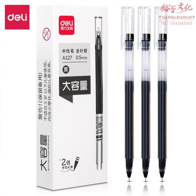 得力A127大容量学生中性笔0.5mm全针管(黑)(支)(12支/盒)SKU:yzwhyp846409