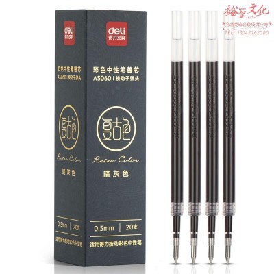 得力A5060复古色中性笔替芯按动0.5mm子弹头(暗灰色)(20支/盒)(定制)SKU:yzwhyp846431