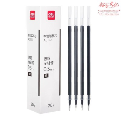 得力A5122常销系列0.5mm拔帽全针管中性笔替芯(黑)(20支/盒)(定制)SKU:yzwhyp846440