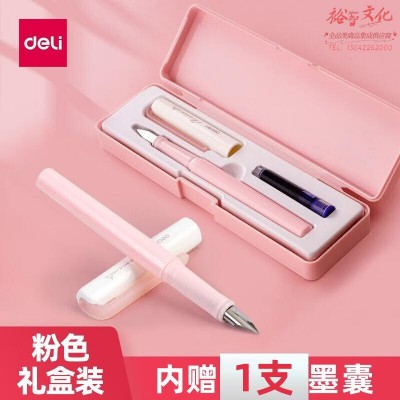 得力(deli) 小学生练字钢笔套装 明尖暗尖矫姿签字笔 学生正姿可擦纯蓝钢笔EF颜色随机 A932 1支钢笔 1支墨囊 粉色SKU:yzwhyp846492