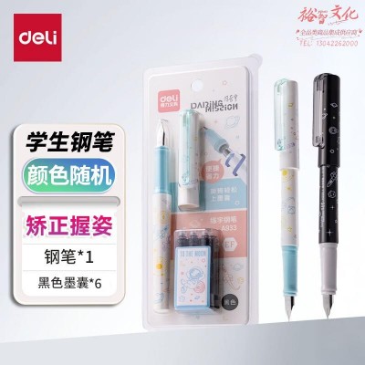 得力(deli)文具学生钢笔中国航天EF尖可换墨囊 正姿练字钢笔签字笔 单支笔附6支墨囊黑色 生日礼物A933SKU:yzwhyp846505
