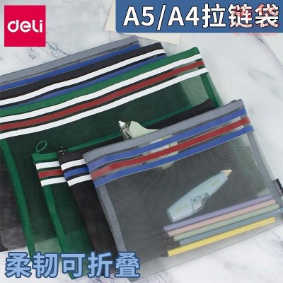 得力(deli)网纱拉链袋透明学生文具试卷文件袋A4加厚尼龙A5办公资料收纳袋大容量(颜色随机) A5单个装(小号) BA118SKU:yzwhyp846530