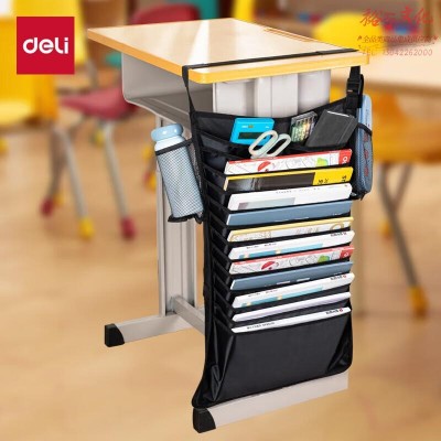 得力(deli)挂书袋课桌书挂袋十三层 升级款交叉收纳书桌挂袋 书袋 学生书本收纳神器 加厚款 黑色BA184SKU:yzwhyp846540