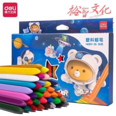 得力HE901-36彩盒装细三角杆塑料蜡笔(混)(36色/盒)SKU:yzwhyp847069