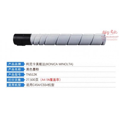 柯尼卡美能达 KONICA MINOLTA TN512K 柯美碳粉黑色墨粉(适用C454/C554机型)印量27500页SKU:yzwhyp849200