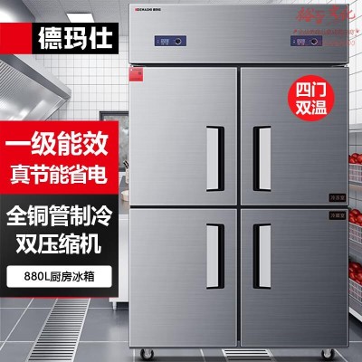 德玛仕(DEMASHI)四门冰箱商用厨房冰柜大容量食堂用双温保鲜柜 880L上冷冻下冷藏BG-900T-2W【1级能效】SKU:yzwhyp849316