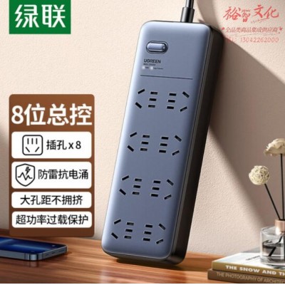 绿联 新国标8位总控防雷插座 抗电涌防电涌防过载插线板/插排/排插/插板/接线板/拖线板 线长1.8米 全长2米SKU:yzwhyp849422