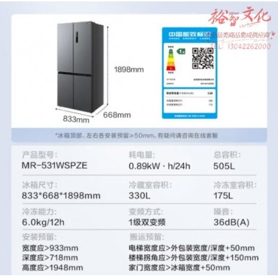 美的(Midea)531双系统双循环对开双开十字四开门风冷无霜一级能效变频大容量家用智能电冰箱MR-531WSPZESKU:yzwhyp850453