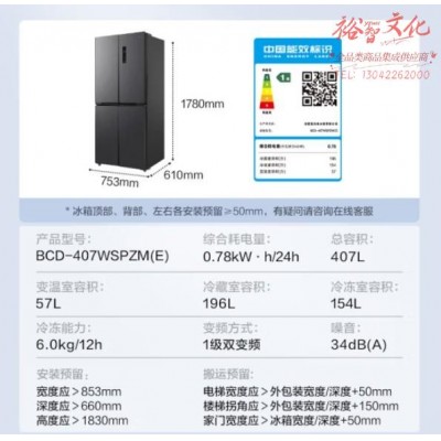 美的(Midea)61厘米薄407升一级智能双变频十字对开双开门四开门家用电冰箱大容量BCD-407WSPZM(E)超薄可嵌入SKU:yzwhyp850454