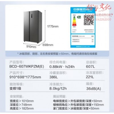 美的(Midea)607升变频一级能效对开门双开门家用智能电冰箱节能无霜净味超薄可嵌入BCD-607WKPZM(E)超大容量SKU:yzwhyp850461