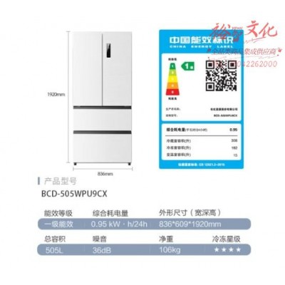 美菱(MeiLing)无忧嵌505升法式多门家用变频一级能效大容量风冷无霜冰箱超薄零嵌入式底部散热BCD-505WPU9CX白色SKU:yzwhyp851460