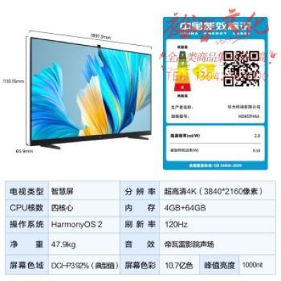 华为智慧屏 V85 HD85THAA 85英寸 超薄全面屏 AI摄像头 4K超高清液晶游戏电视 帝瓦雷影院声场SKU:yzwhyp851764