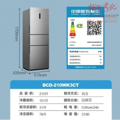 首页 > 电气设备 > 电冰箱 > 新飞(Frestec)210升三门养鲜风冷无霜三门小型冰箱智慧控温小型便捷37分贝低音小冰箱BCD-210WK3CTSKU:yzwhyp852655