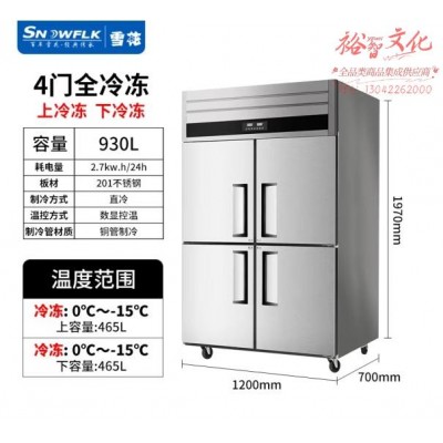 雪花(SNOWFLK)四门冰箱商用冰柜立式不锈钢厨房冰箱冷柜双温冷藏冷冻大容量 标准款-930/四门全冷冻SKU:yzwhyp853327