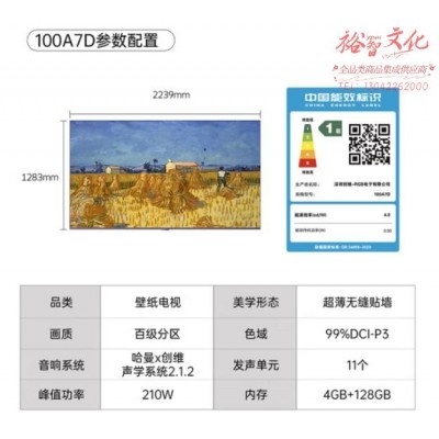 首页 > 广播、电视、电影设备 > 组合音像设备 > 音视频播放设备 > 创维壁纸电视100A7D 100英寸超薄壁画艺术电视 无缝贴墙百变艺术屏 护眼超薄巨幕大屏SKU:yzwhyp854998