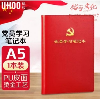 优和(UHOO)党员学习笔记本 A5/100张 1本装 皮面商务笔记会议记录日记本 大红色 0663SKU:yzwhyp855082