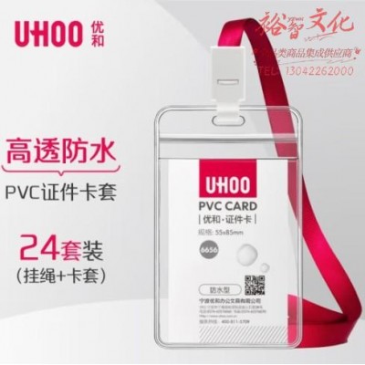 优和(UHOO)工作牌防水PVC证件卡套 24个卡套 24根挂绳 竖式 透明 工作证员工牌胸卡出入证 6656-5红色挂绳SKU:yzwhyp855088